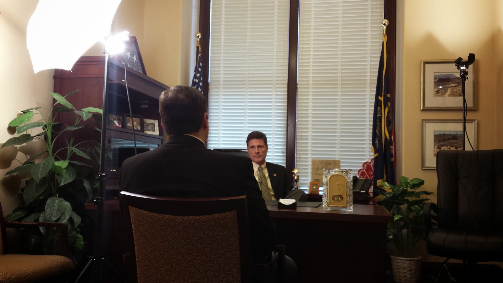 | Rep Dunnigan conversing with a local news reporter |